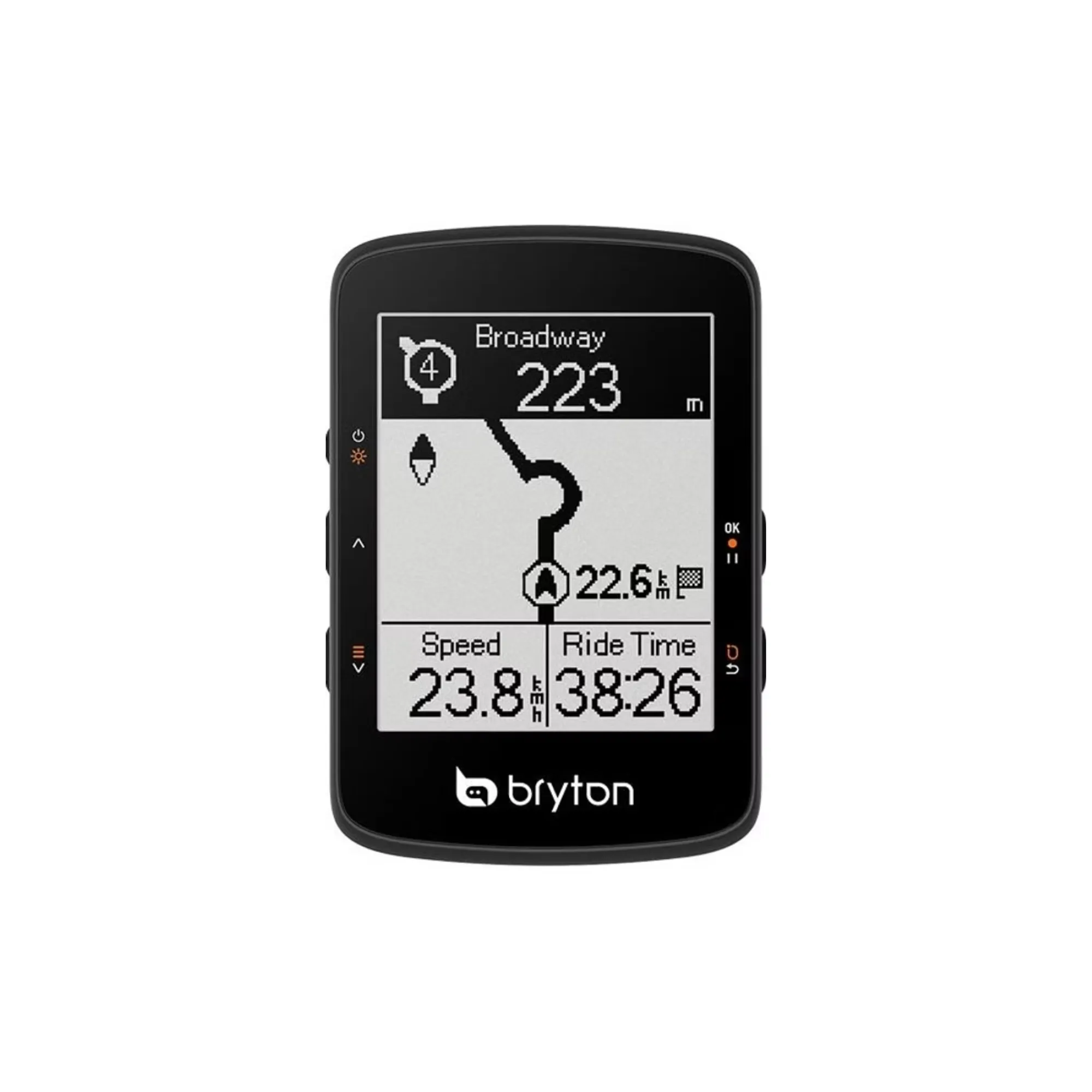 Bryton Rider 460E je zmogljiv GPS kolesarski računalnik, opremljen z 2,6-palčnim črno-belim LCD zaslonom, ki omogoča jasno prikazovanje do 8 podatkov na strani. Naprava podpira navigacijo z zavoj-na-zavojem, funkcijo Climb Challenge za prikaz vzponov ter napredne in načrtovane treninge. Združljiv je z različnimi satelitskimi sistemi (GPS, Glonass, Galileo, Baidou, QZSS) in omogoča povezavo z ANT+ ter Bluetooth senzorji, vključno z radarskimi lučmi, merilniki srčnega utripa, kadence in hitrosti. Baterija zagotavlja do 32 ur delovanja, polnjenje pa poteka preko USB-C priključka. Rider 460E omogoča tudi sledenje v živo, skupinske vožnje in sinhronizacijo z aplikacijami, kot so Strava, Komoot in Bryton Active.
